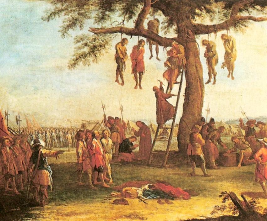 En 1632, les troupes protestantes du roi de Suède arrivent en force et se jettent sur l’Alsace. Elles traversent sans résistance et exterminent la population en avançant vers le sud. Personne n’avait encore imaginé leur cruauté ; l’Alsace est à feu et à sang.